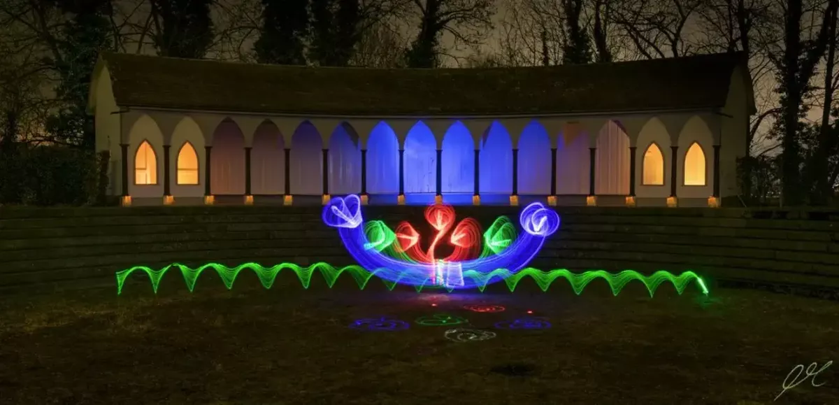 Ein dunkler Hintergrund, lange Belichtungszeit, Lichtquelle die sich bewegt und fertig ist der Spass 😊