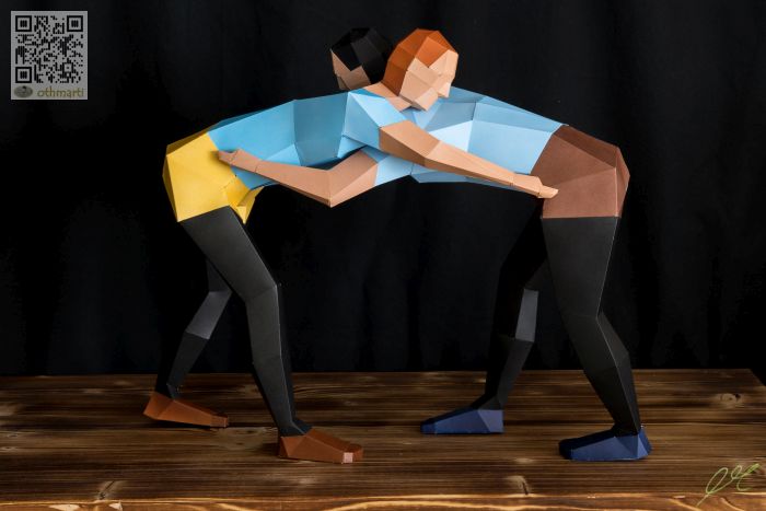 Tradition trifft auf kreative Handwerkskunst: Diese zwei Schwinger aus Papier verkörpern die Kraft und Eleganz des Schweizer Nationalsports auf einzigartige Weise. Sie zeigen eine typische Szene aus dem Schwingen und bringen echte Heimatverbundenheit zum Ausdruck.